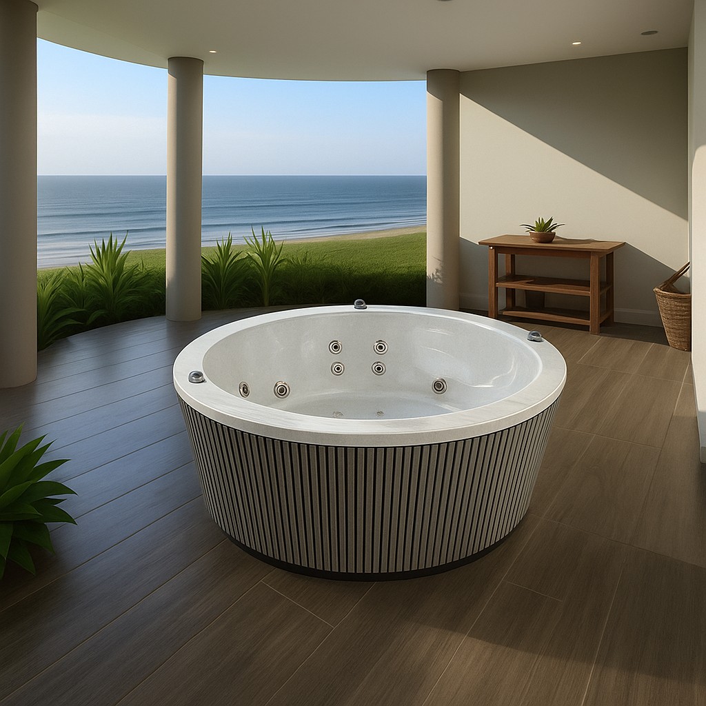 A premium, locally made spa with a unique round design, ideal for both large gatherings and intimate moments. Perfectly suited to fit any space.